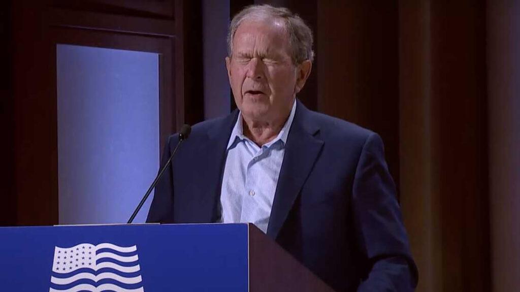 “Un uomo ha preso la decisione di lanciare un’invasione completamente ingiustificata e brutale in Iraq”, ha detto mercoledì l’ex presidente George W. Bush prima di correggersi rapidamente, dicendo che intendeva riferirsi alla guerra decisa da Putin contro l’Ucraina… ma la frittata ormai era fatta.