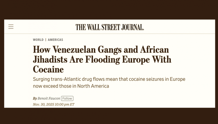 "Il Venezuela è diventato un importante trampolino di lancio per enormi volumi di cocaina spediti verso l'Africa occidentale, dove i jihadisti stanno contribuendo a trafficarla in Europa in quantità record", inizia l'articolo, che si spinge a sottolineare che "la campagna di pressione dell'amministrazione Trump contro il leader venezuelano Nicolás Maduro, che si sostiene sia fortemente coinvolto nel traffico di droga, ha attirato l'attenzione mondiale sul ruolo del Paese nel traffico di droga".