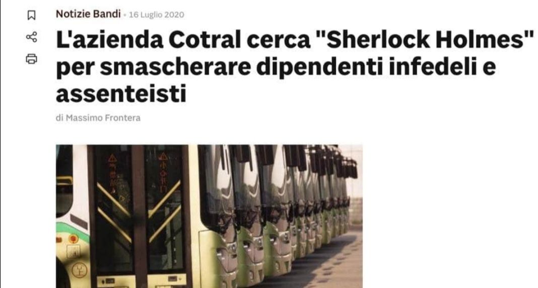 Invitato a L’Aria che Tira su LA7 mi sono trovato di fronte ad un servizio sulla decisione di Cotral, azienda dei trasporti della regione Lazio, di assoldare investigari privati per spiare i dipendenti. Purtroppo non mi è stato possibile commentare, quindi esprimo qui il mio pensiero.