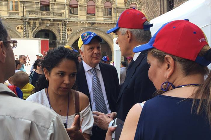 e, infine, il presidente della Commissione affari esteri del Senato (povera Italia!) Pierferdinando Casini ("il vuoto cosmico che attacca e continua ad attaccare la sovranità del Venezuela") e soprattutto un ministro a Bologna. Si, avete letto bene, un ministro del governo Renzi riconfermato dal governo Gentiloni, Gian Luca Galletti, immortalato con tanto di cappellino a Bologna mentre tifava apertamente per l'azione sovversiva contro le istituzioni del Venezuela.