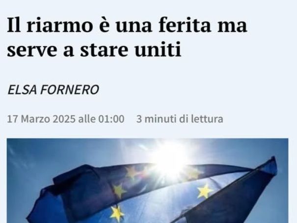 Ora la professoressa afferma che tutte e tutti dobbiamo accogliere le ferite del riarmo e poi magari anche quelle della guerra.