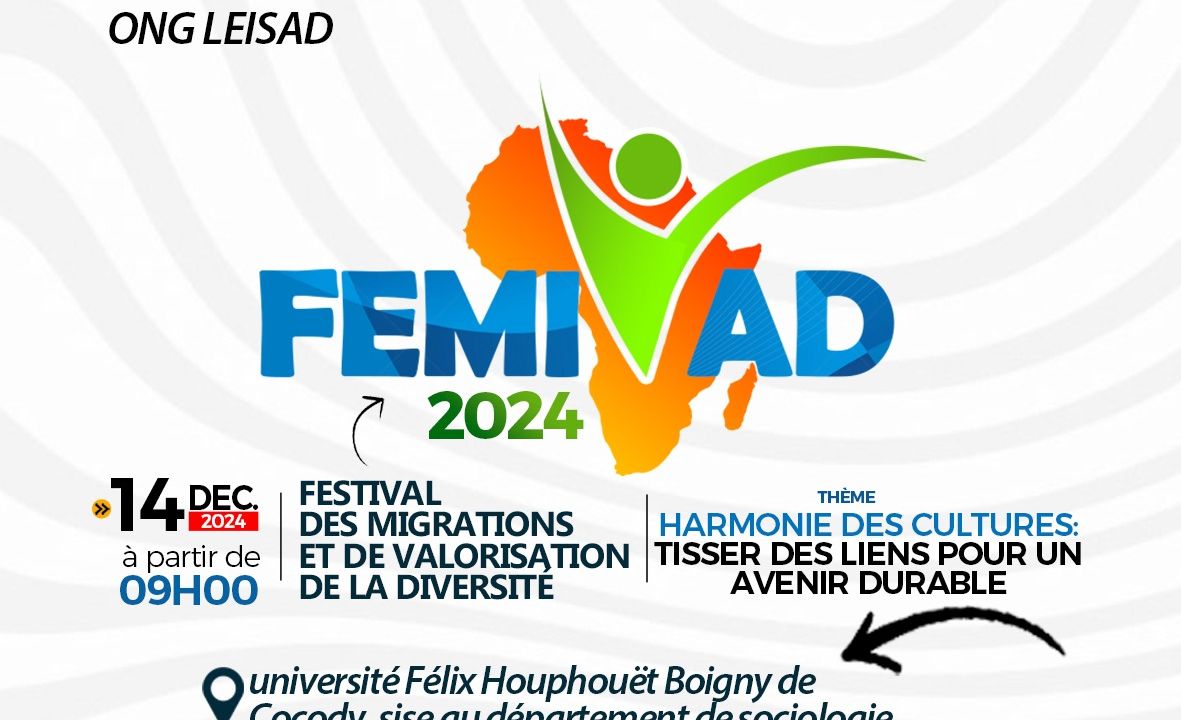Nasce oggi ad Abidjan in Costa d’Avorio il festival FEMIVAD (Festival della Migrazione e della Valorizzazione della Diversità). Un momento, non si tratta di un festival per spingere giovani ragazzini sprovveduti ad scappare di casa per consegnarsi alle reti della tratta di esseri umani.