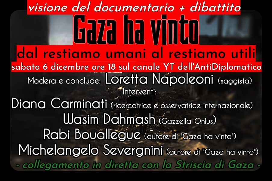 Il prossimo sabato 6 dicembre alle ore 18 sul canale YT dell’AntiDiplomatico organizzeremo una visione + dibattito.