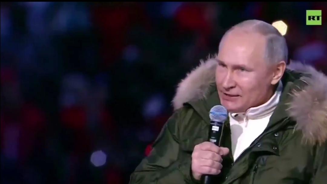 Allo stadio Luzhniki di Mosca #Putin, prima del concerto commemorativo della riunione Russia-Crimea, ha salutato il pubblico. Una scena molto lontana dall'Europa UE, sia politicamente che sotto il profilo sanitario.