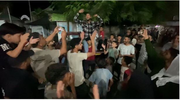 Uomini e donne palestinesi hanno festeggiato gridando “Dio è più grande” ad ogni esplosione che echeggiava nel cielo.