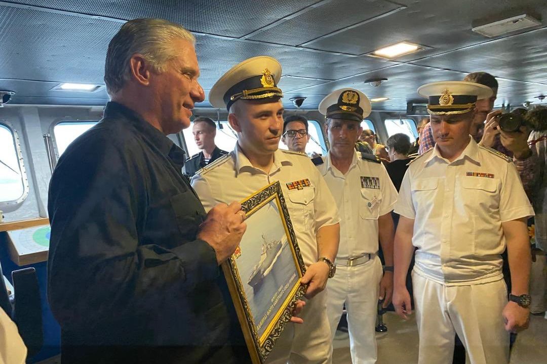 ???????????? El presidente cubano Miguel Díaz-Canel llegó al puerto de La Habana y abordó uno de los cuatro buques militares de la Flota del Norte de Rusia pic.twitter.com/4ypdiZFzkF