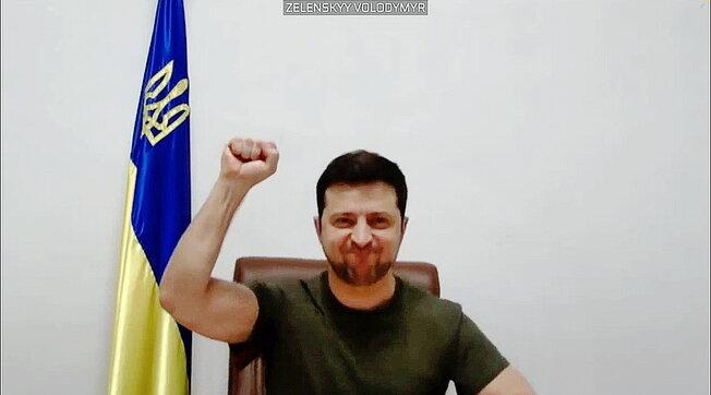 Dopo che Zelensky ha ufficialmente bandito i restanti partiti di sinistra (quello comunista era già stato messo al bando nel 2015), i suoi sceneggiatori gli indicano la mossa successiva: terminare la videoconferenza al vertice NATO di Buxelles col pugno chiuso.