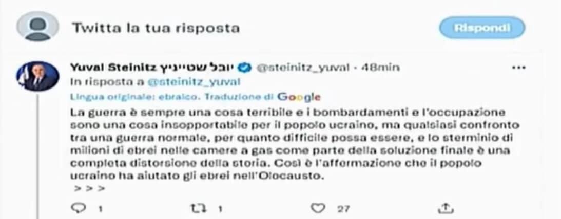Alla Knesset di Israele c’è stato un vergognoso discorso revisionista di Zelenskiy, che ha paragonato gli ucraini di oggi a agli ebrei sterminati ieri dai nazisti. Tra l’altro dimenticando che l’Olocausto è avvenuto con collaborazione di criminali come Bandera, che oggi è un eroe nazionale per il governo ucraino e le sue milizie.