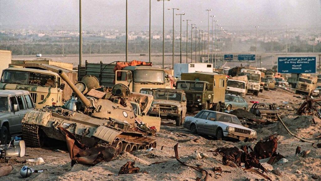 Cosa è successo davvero? Il 26 febbraio 1991 l’Iraq aveva annunciato di aderire alla proposta sovietica e che le sue truppe si sarebbero ritirate dal Kuwait. Secondo testimoni oculari kuwaitiani, citati dal Washington Post dell’11 marzo 1991, il ritiro iniziò sulle due autostrade e verso sera era in pieno svolgimento. Verso mezzanotte è iniziato il primo bombardamento statunitense.