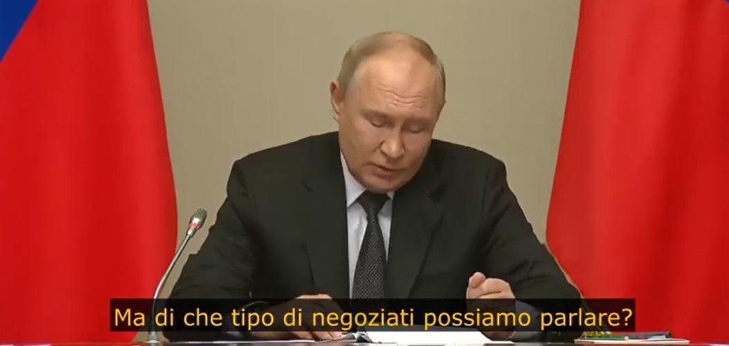 "A quanto pare, il nemico, con l'aiuto dei suoi padroni occidentali, sta facendo la sua volontà, e l'Occidente ci sta combattendo con le mani degli ucraini", ha detto Putin. "Quindi, a quanto pare, il nemico cerca di migliorare le sue posizioni negoziali in futuro, ma di che tipo di negoziati possiamo parlare con persone che attaccano indiscriminatamente i civili, le infrastrutture civili o cercano di minacciare gli impianti nucleari? Di cosa possiamo parlare con loro?", ha dichiarato Putin.