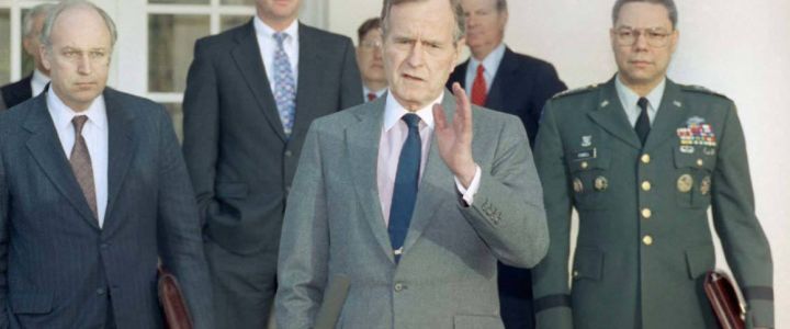 Media mainstream e telegiornali ne hanno tessuto le lodi come guerriero, petroliere, capo della Cia (!), ambasciatore, presidente degli Stati Uniti “purtroppo” per un solo andato, causa la crisi che lo costrinse ad infrangere la sua unica – e perciò famosa – promessa elettorale: “basta aumenti delle tasse”. Omettono di ricordare che fin lì, nella tradizione anglosassone, in campagna elettorale non era “appropriato” parlare di tasse, per il buon motivo che tutti sono capaci di prometterne la diminuzione, ma è poi la congiuntura economica che ti obbliga a fare quel che si può.