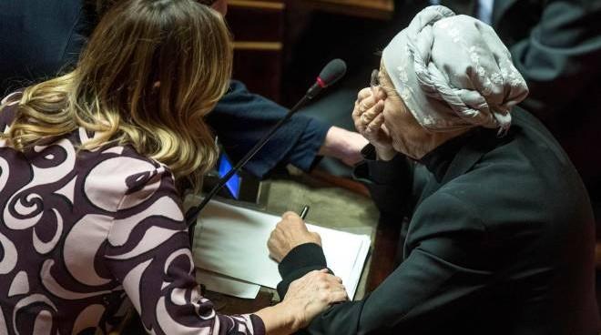 Emma Bonino si commuove al Senato perché dice di "difendere la democrazia".