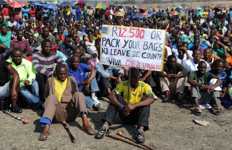 Il caso Marikana: un paese in sciopero. Da inizio agosto i minatori della Lomnin erano in sciopero per rivendicare aumenti salariali e un miglioramento delle condizioni lavorative. Dallo sciopero agli scontri il passo è stato breve e già prima della morte dei 34 minatori di Marikana il 16 agosto scorso c’erano state una decina di vittime. Solo dopo più di un mese di contrattazioni si è raggiunto un accordo per un aumento salariale molto inferiore rispetto alle rivendicazioni dei lavoratori.