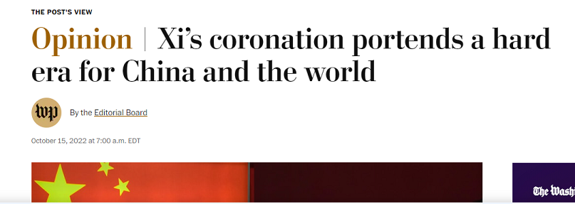 Washington Post ha pubblicato un editoriale vetriolico in occasione del XX Congresso Nazionale del Partito Comunista Cinese che si sta svolgendo a Pechino.